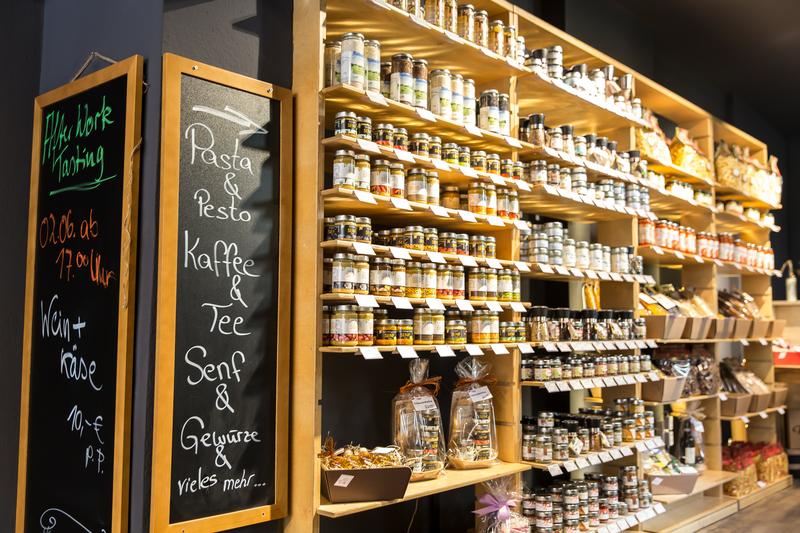 Feinkost • Reis & Risotto • Pasta & Nudeln • Saucen & Salsa • Pesto • Bruschetta • Paté • Dips • Antipasti • Terrinen • Senf • Konfitüren • Wein-Gelee • Chutneys • Gewürze & Kräuter • Salz & Pfeffer • Zucker • Truffes • Schokolade • Knabberartikel • Gebäck • Tee • Kaffee & Espresso • Essig & Essigbalsame • Speise- & Würzöle